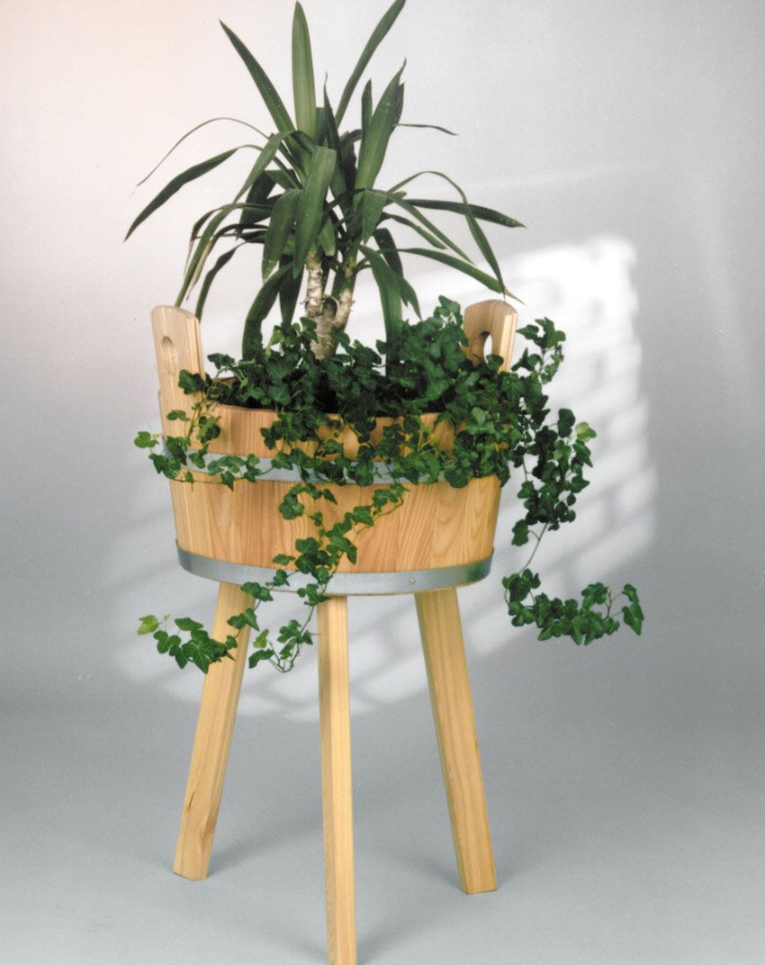flower bucket, larch, oil painted, with foots