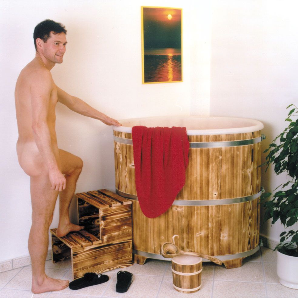 sauna dunking tub, with plastic, outside flamed