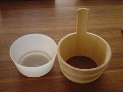 sauna bucket, 4 l volume, plastic, wood hoop, outside natural