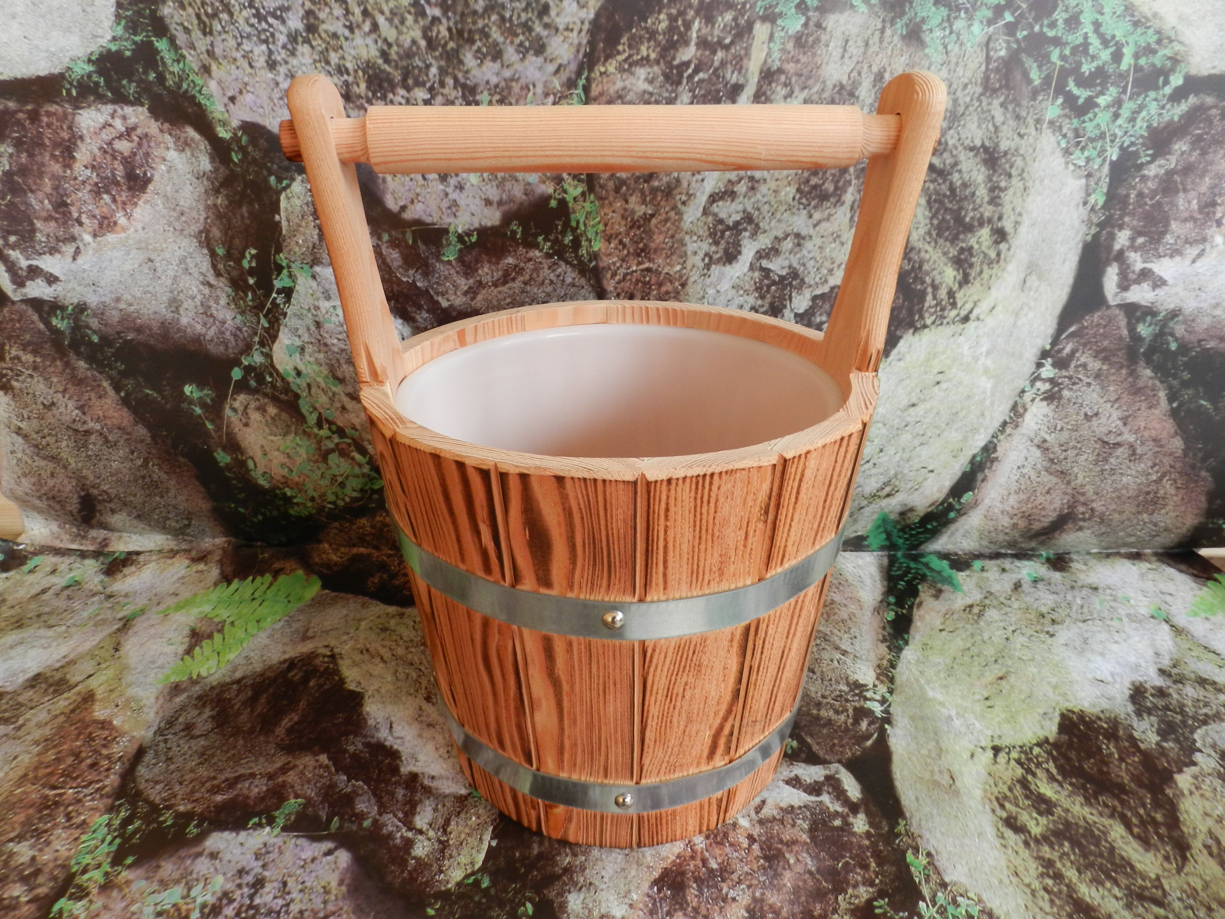 Saunakübel aus Lärchenholz mit Tragegriff,